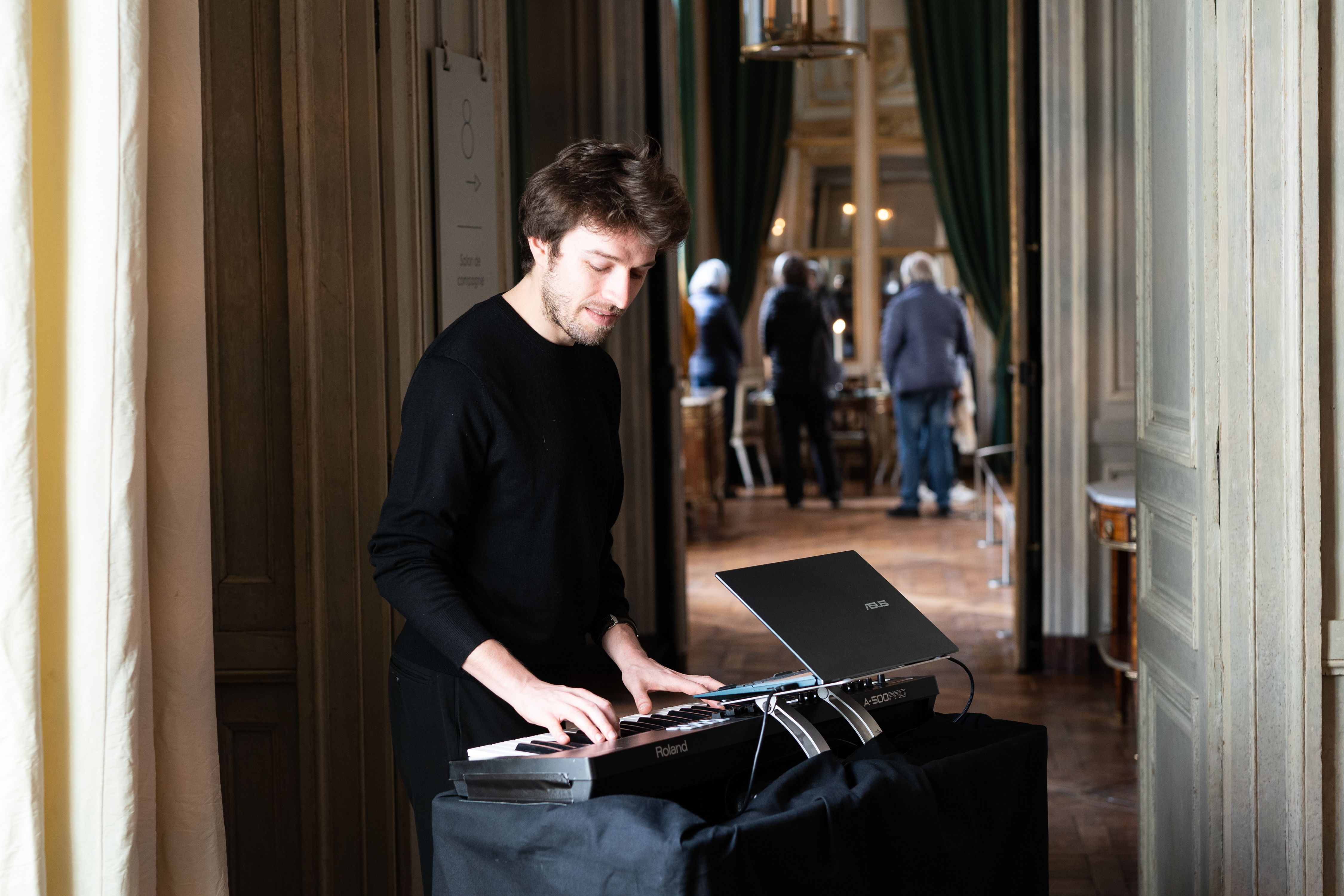 Dans cet espace somptueux, riche en mobiliers, dorures, tissus, parquets et motifs raffinés, les poèmes se mêlent aux musiques envoûtantes du piano dans des jeux de correspondances avec les différentes salles.